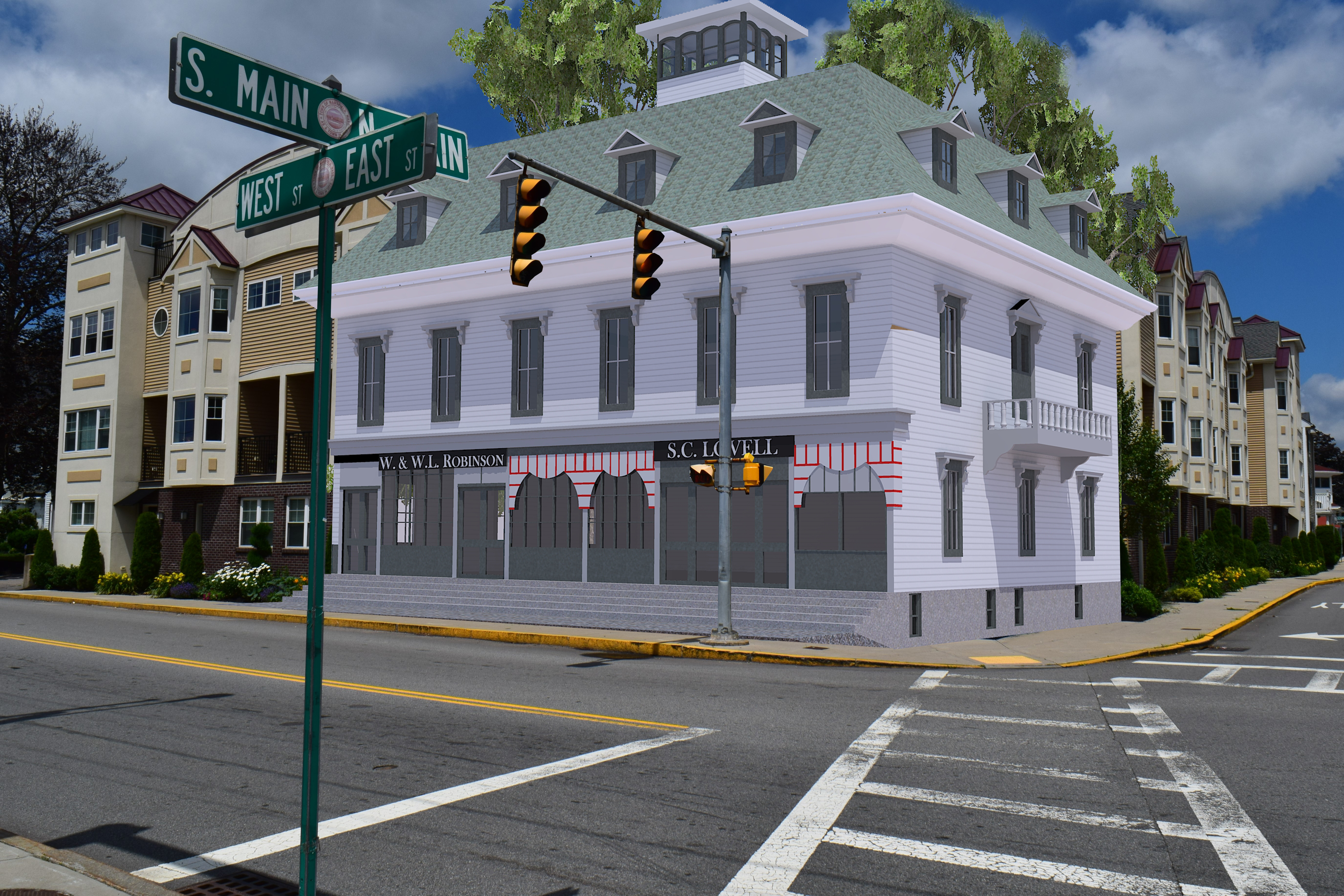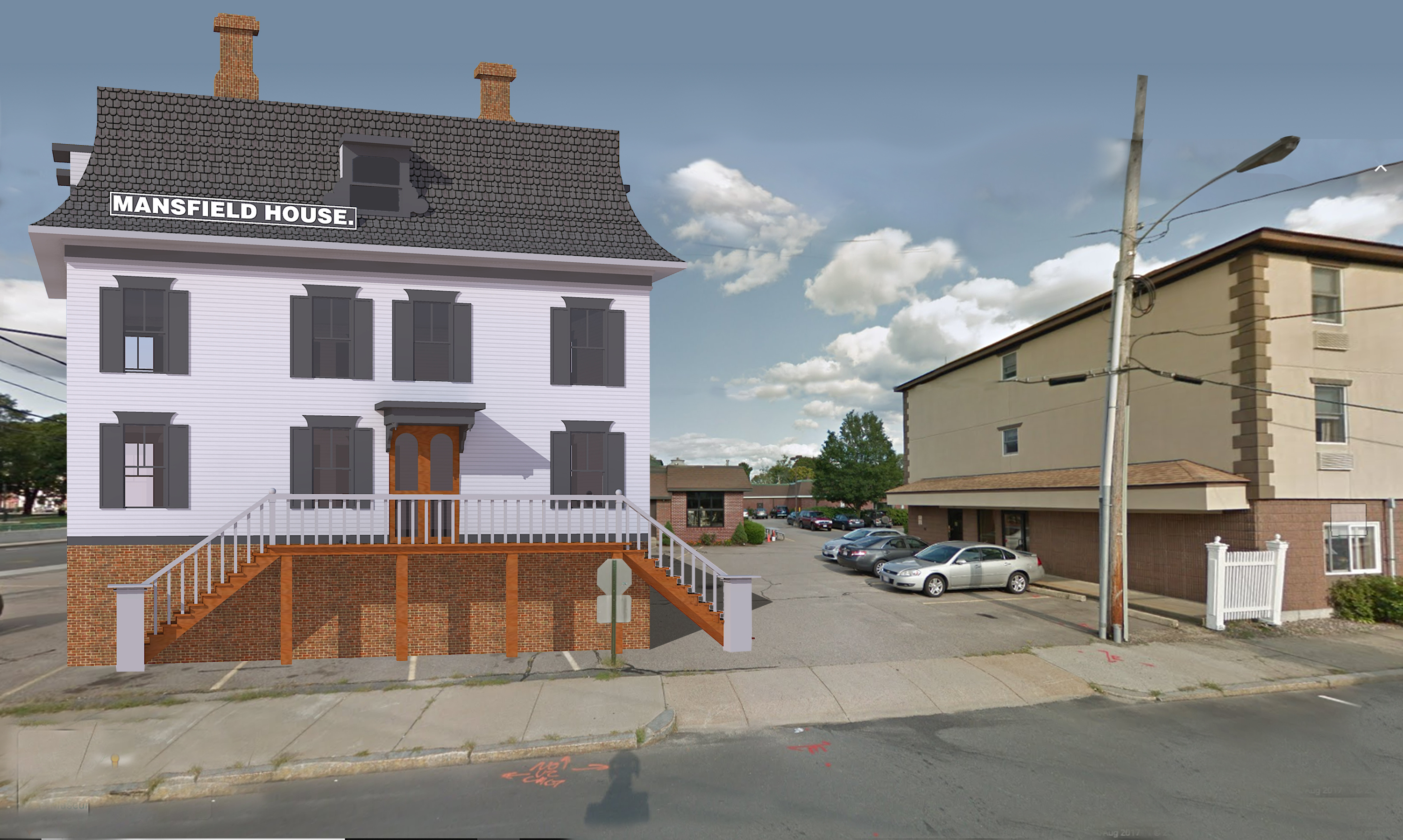 Mansfield's history stretches back to the seventeenth century. Originally a part of Taunton, then set aside as the Norton North Precinct, Mansfield was incorporated as a district in 1770 and achieved full legal status as a town in 1775. Inevitably as the years pass, treasured old buildings are lost, through accident, replacement, or development. We wondered what the town would look like if some of these buildings had survived. The images below attempts, in part, to answer that question.