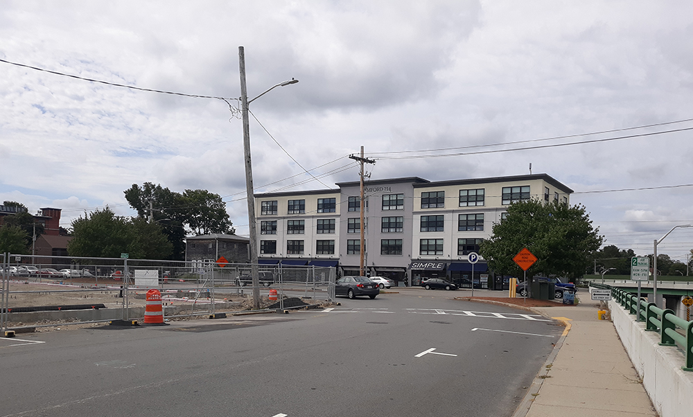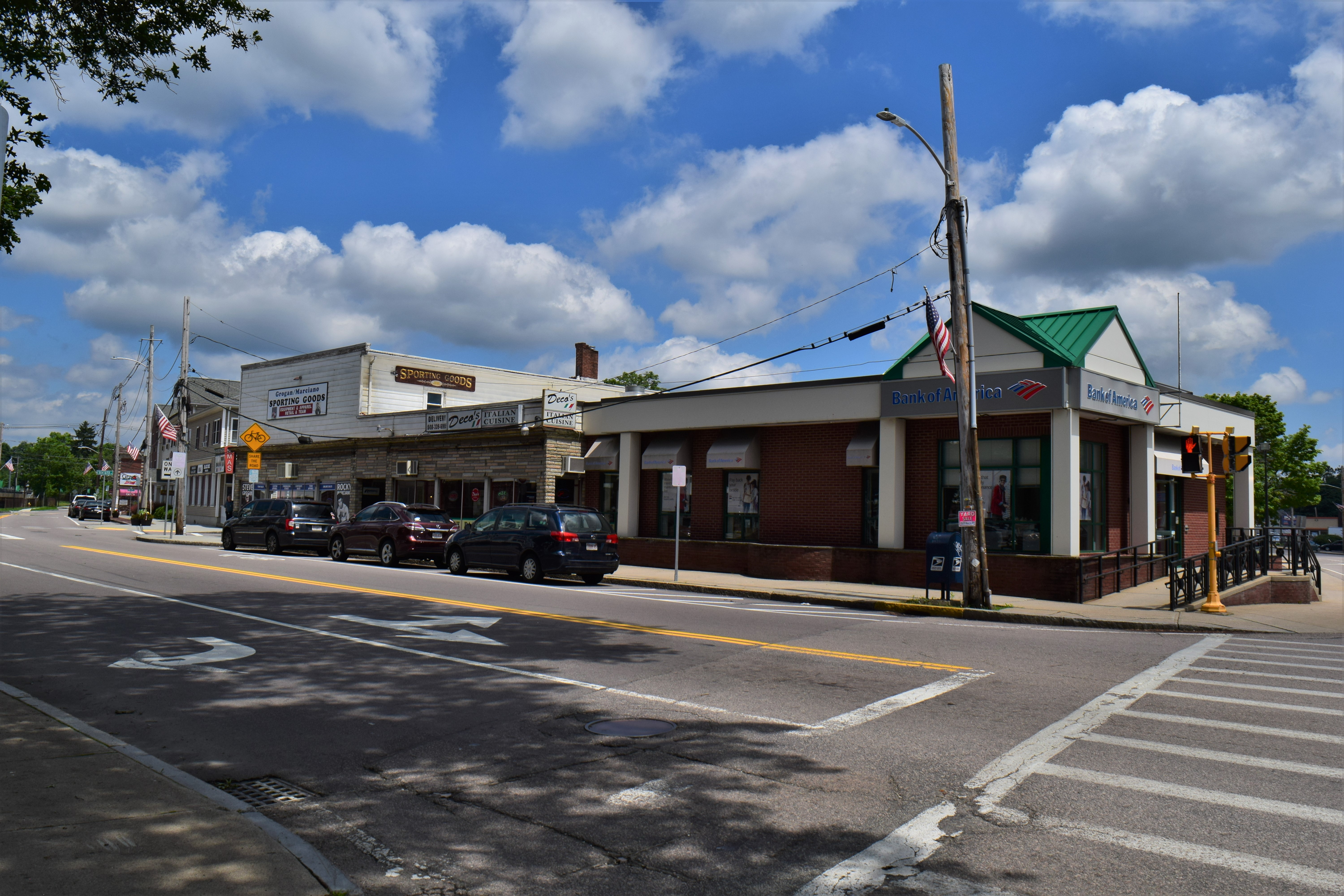Cuneo's was a popular store that sold everything from tobacco and newspapers to beer and wine. It was in the heart of the Depot Square, where Chauncy Street and Rumford Avenue once met. Today it is the site of the Rumford 214 condominium building. |