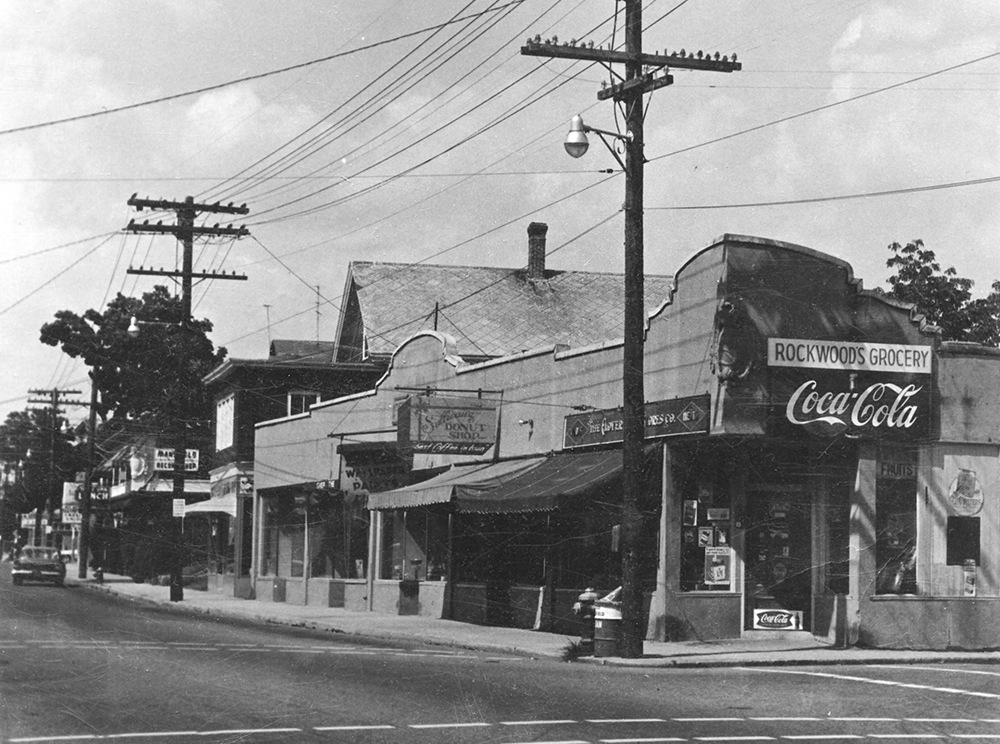 Rockwood's Grocery was located at the corner of North Main and Church Streets. Known popularly as "Rocky’s," the building was close to the roadway. It was torn down and replaced by the building currently occupied by Flynn’s Irish Pub, which is set further back. |